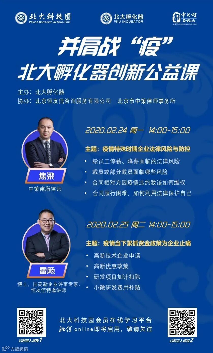疫情当前,应时而动。北大孵化器启动了线上“创新公益课”,邀请行业知名机构导师在线授课,剖析企业发展难点、洞察企业运营风险、深度提供解决方案,以实际行动支持中小微企业创新发展。