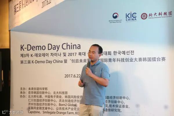 6月22日下午,北大科技园携手韩国未来创造科学部、在华韩国创新中心共同举办的第三届K-Demo Day China暨“创启未来”2017国际青年科技创业大赛韩国擂台赛在创业大街3W咖啡厅圆满落幕。韩国未来创造科学部参赞李承源、在华韩国创新中心主任高永和、北大科技园副总裁王国成等主办方代表出席活动并致辞,来自中韩两国的创投机构、评委导师、知名媒体和21个在华创业韩国参赛企业等近百人共享中韩创新创业交流盛事。