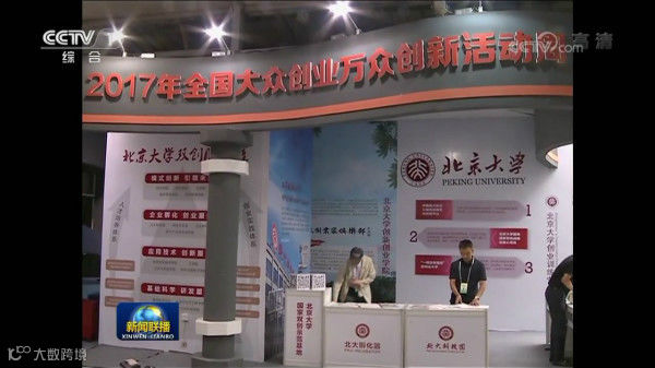 15日开幕仪式当天,央视新闻联播走访上海主会场各参展单位。最终,北京大学国家双创示范基地展区从150个来自全国各地的优秀展示单位中脱颖而出,作为创新创业服务平台杰出代表亮相新闻联播双创周专题报道。