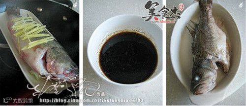 3、蒸好鱼时盘里的汁水比较腥,一定要倒掉。浇在葱姜上的油一定要热,这样才能释放出葱姜的香味。