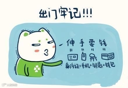 6.出门牢记四个字准不会落下东西,那就是“伸手要钱”(伸:身份证,手:手机,要:钥匙,钱:钱包)