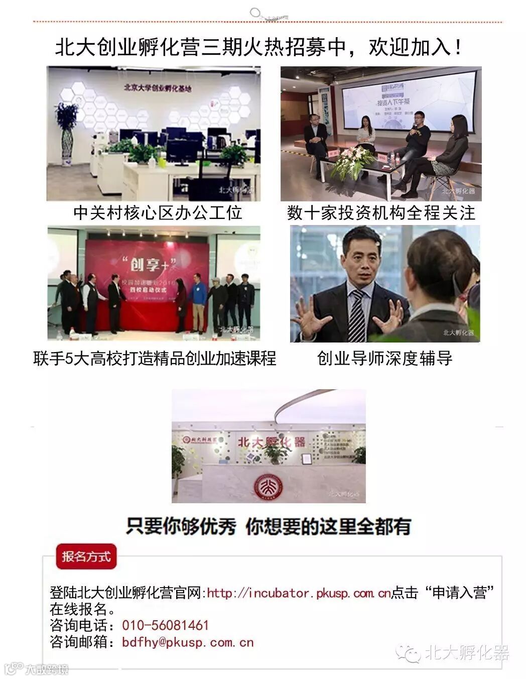 发展原创科技,建设精品园区!北大孵化器微信公众号隆重上线啦!长按下图中二维码然后选择“识别图中二维码”即可添加本公众号。