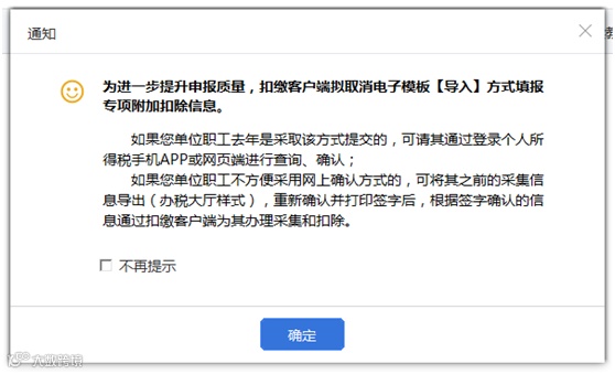 2. 如果单位职工不方便采用网上确认方式的,可先将上年数据迁移,再将其之前的采集信息导出(办税大厅样式),重新确认并打印签字后,根据签字确认的信息通过扣缴客户端添加或修改为其办理采集和扣除。