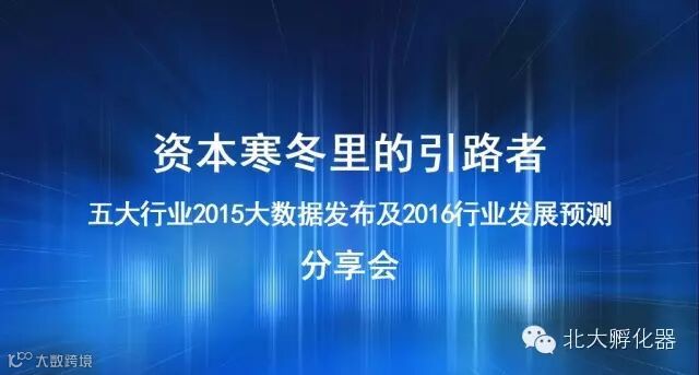 本次分享会,【北大孵化器】携手葡萄创投、易观智库,让顶尖的分析师大咖用大数据干货作为“抗寒外衣”,从企业营销、旅游、互娱、金融、电商五大行业角度总结2015预测2016,为你提供专业分析!