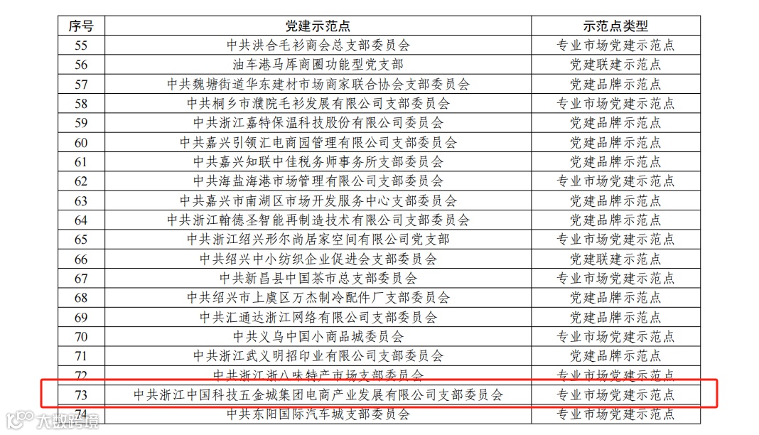 日前,浙江省市场监督管理局公布了全省“小个专”及新就业群体党建示范点名单,中共浙江中国科技五金城集团电商产业发展有限公司支部委员会被评为省级专业市场党建示范点。