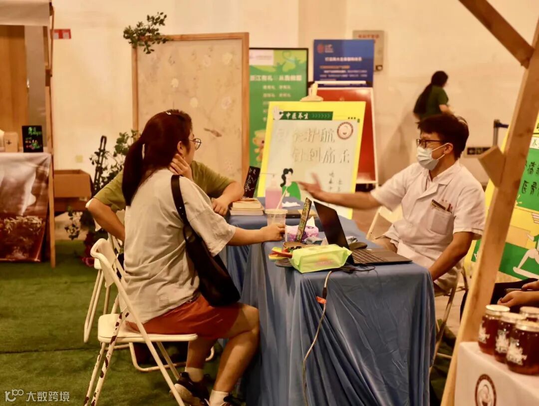 2024淄博烧烤&城市生活艺术展的中医奇妙夜,可以说人来人往。坐镇摊位上的是永康市中医针灸科、推拿科、口腔科等各科室的医生们,现场设置了中医义诊区、理疗区等,更有养生茶饮、中药咖啡、八段锦养生操等特色项目。