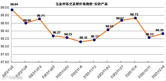 “安防产品”上周价格指数收于98.33点,环比上升0.10个百分点,升幅值位居十二大类之首。“安防产品”周价格指数的上升主要是受该类别下二级分类中的“消防器材”类商品价格上升影响,本周“消防器材”价格指数收于97.85点,环比上升0.48个百分点。其个别规格品中的“灭火器”商品价格较前一周上升7.69个百分点。