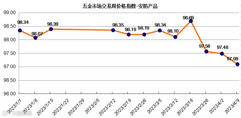 据监测,“中国·永康五金指数”五金市场交易周价格总指数上周(2023年4月3日至2023年4月9日)收于104.78点,较前一周微幅下跌了0.02个百分点。