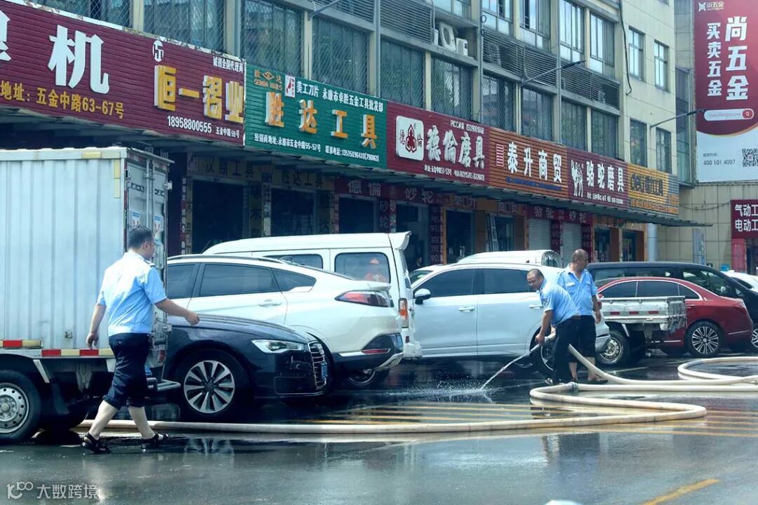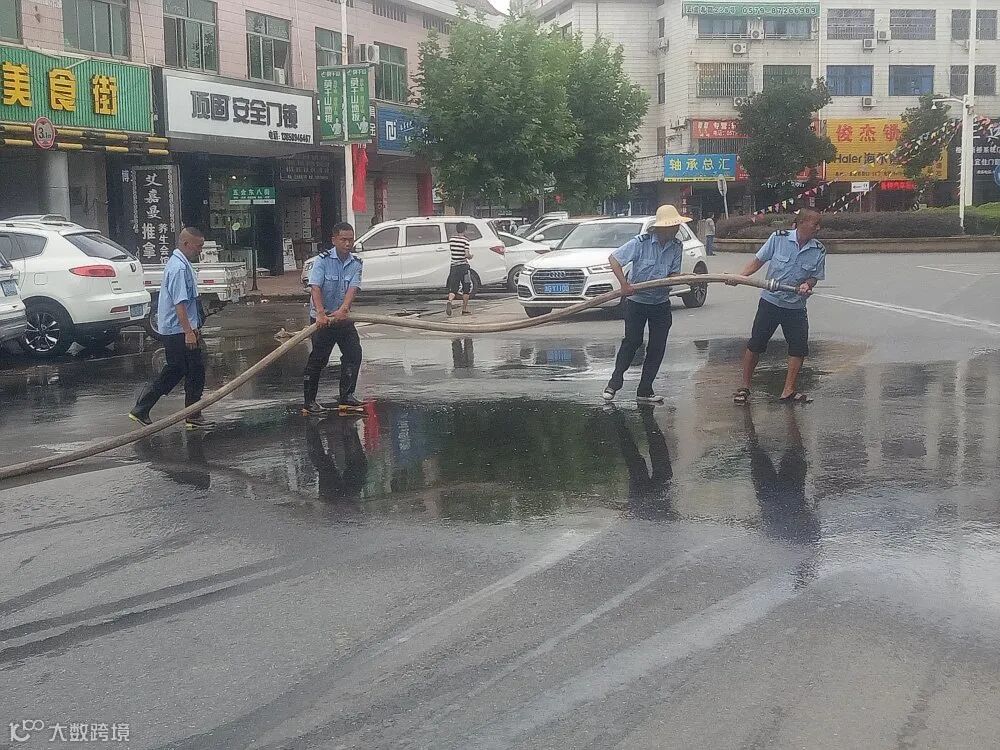 五金城市场经营管理公司立即组织人员,以街(路)为单位对路面淤泥、垃圾进行清洗打扫,疏通下水管道,同时做好市场交通秩序管理,保障道路畅通。