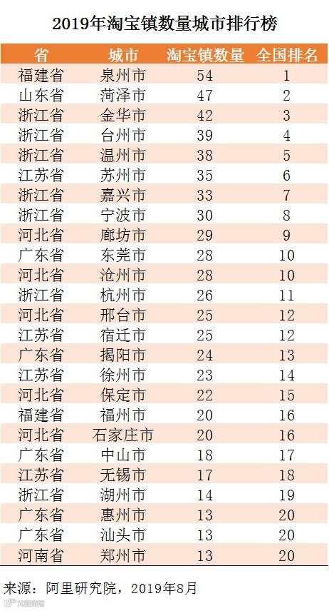 2019年淘宝村、镇名单