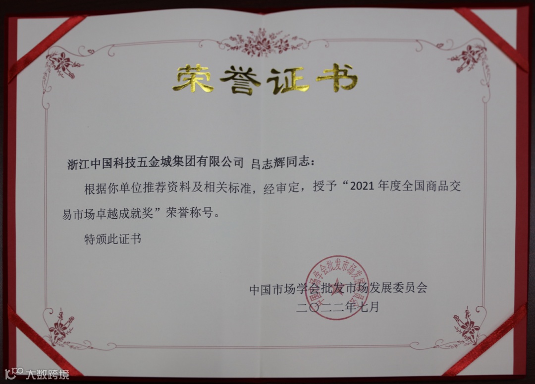 会议期间,大会还对2021年度全国商品交易市场行业文明诚信经营示范市场及为行业发展做出巨大贡献的单位及个人进行表彰。五金城集团领导吕志辉、池欣影分别获“全国商品交易市场卓越成就奖”“全国商品交易市场先进人物”荣誉称号。五金城市场经营户浙江汉固达网络信息技术有限公司、永康市龙腾数码城有限公司、永康市大世界家电商场获评“全国商品交易市场文明诚信经营示范商户”,浙江金指数投资管理股份有限公司佳捷仕获评“全国商品交易市场消费者信赖品牌”。