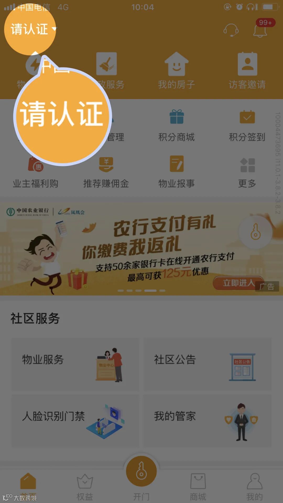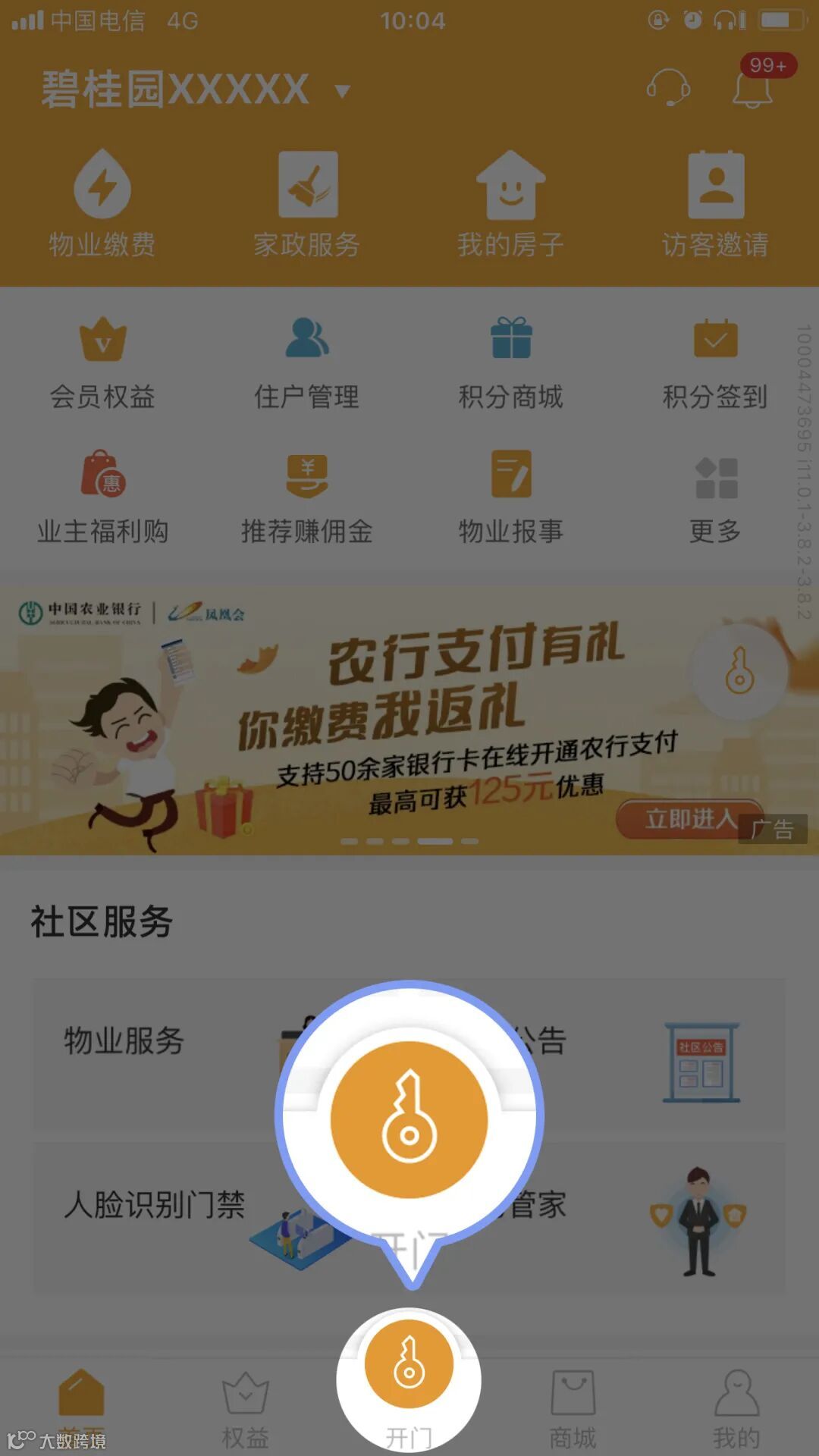 登录凤凰会APP,已通过房屋认证审核的用户,可以使用手机【开门】功能。