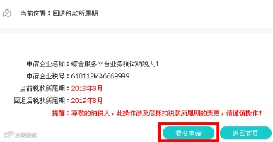 【第二步】点击“回退税款所属期”后,进入回退税款所属期界面,检查“当前税款所属期”和“回退后税款所属期”是否正确。如下图:
