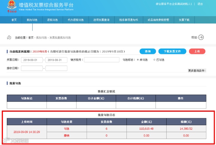 【第四步】点击“确定”按钮后可以在批量勾选日志表里可以看到本次批量勾选的汇总信息。