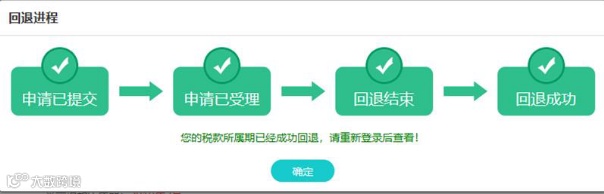 如果申请回退的企业满足所有回退条件,可以正常回退,系统显示回退成功,如下图: