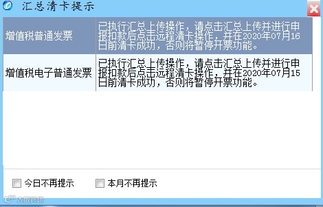 (2)汇总报送和清卡都要在每月报税期(一般是1-15日,如遇节假日会延期)内完成 ,否则无法开票,过了报税期会锁死。锁死后只能带着税控设备去大厅清卡!