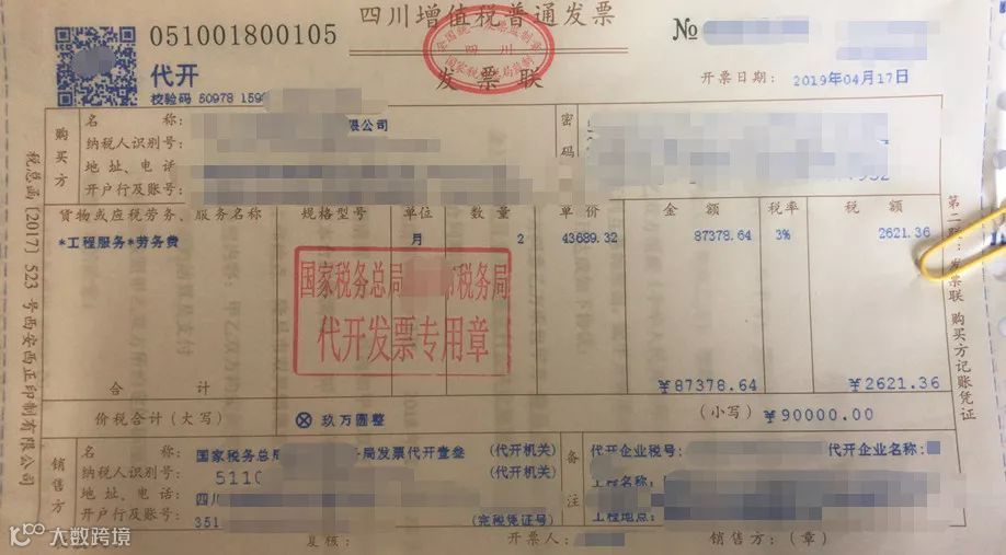 比如这张代开发票就不需要支付方再履行代扣义务了。