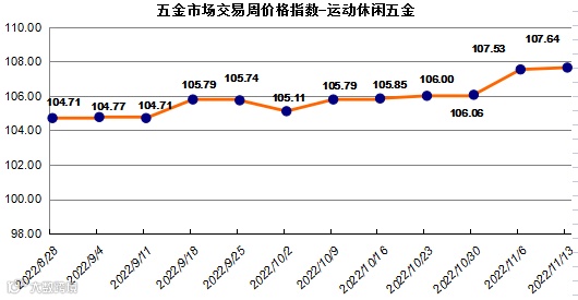 (二)运动休闲五金周价格指数,持续上升