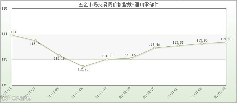 “通用零部件”上周价格指数收于113.68点,微幅上调0.04个百分点,涨幅位居十二大类第四。该类别商品价格指数的上调主要是受其类别下二级分类中的“紧固件”类商品销售量上涨的带动,“紧固件”上周价格指数收于112.20点,小幅上调0.58个百分点。