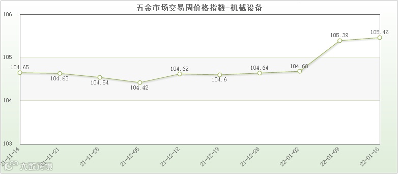 据监测,“中国·永康五金指数”五金市场交易周价格总指数上周(2022年01月10日至2022年01月16日)收于104.42点,较上一周环比微幅上涨0.03个百分点。