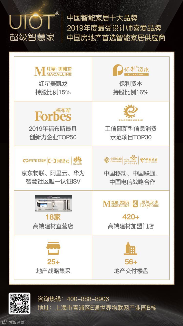 项目采用UIOT超级智慧家·全屋智能家居系统,为业主提供智能中控、智能照明、智能情景、智能窗帘、智能语音、智能中央空调、智能环境监测等系统,全面升级昆山人居标准,重塑高端豪宅生活典范。为给业主打造健康丰盛、现代智慧、舒适便捷的幸福生活。