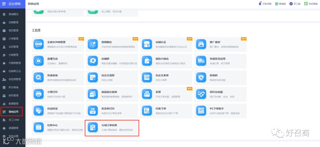 路径:商城后台-营销应用-公域订单转换