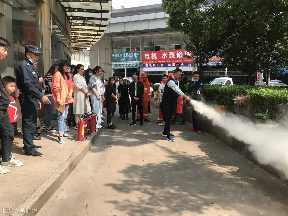 4月17日,金盾保安公司对金都市场商户—大世界家电工作人员开展应急疏散消防演练和消防安全知识培训。