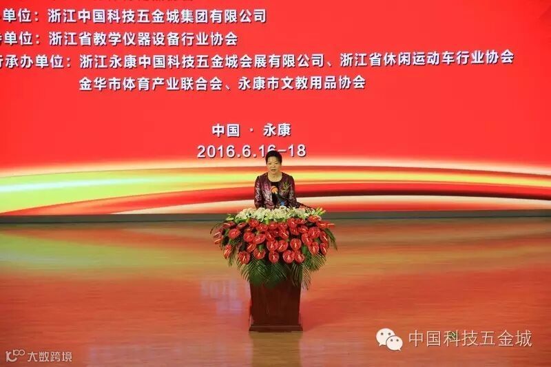市长金政在致辞中指出,永康是闻名中外的中国五金之都,工业基础扎实,产品门类多,产销量大。在传统五金八大行业外,我市文教用品和体育休闲产业规模逐渐壮大,拥有文教用品制造企业300多家,产值50多亿元;体育用品制造企业1800多家,产值近百亿元,先后荣获了中国文教用品生产基地、中国休闲运动车之都、中国全地形车生产基地、浙江省体育用品制造业基地等称号。目前,我市正在全力创建国家体育产业示范基地。
