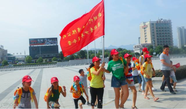 孩子们举着队旗,迫不及待地奔向展示厅~