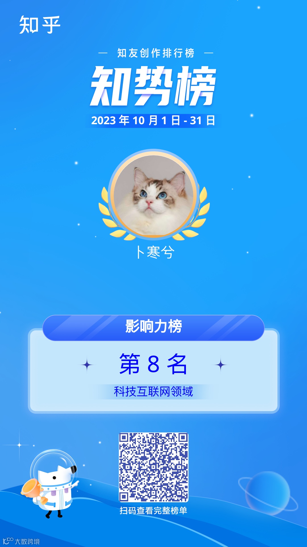 11月8日,知乎发布了10月知友创作排行榜「知势榜」,其中有33位新知百略知乎MCN旗下签约创作者荣登榜单!