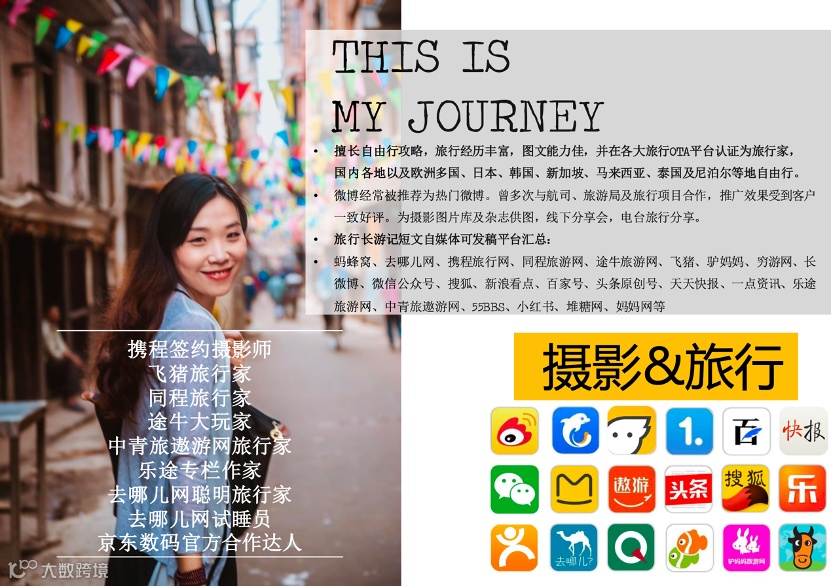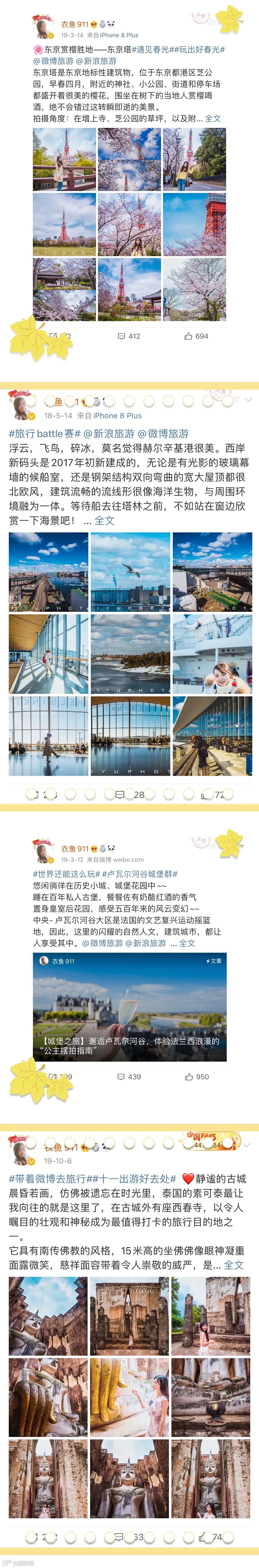 从宝宝五个月起,衣鱼就开启了亲子旅行,并成为了各大平台认证的旅行家、知名旅游博主、亲子旅行达人、穷游精华作者、电视及广播电台节目嘉宾等。由于擅长生活方式、摄影穿搭、好物分享、探店及目的地自由行攻略,因此长期为摄影图库及杂志社供图,微博也经常被推荐为热门微博。