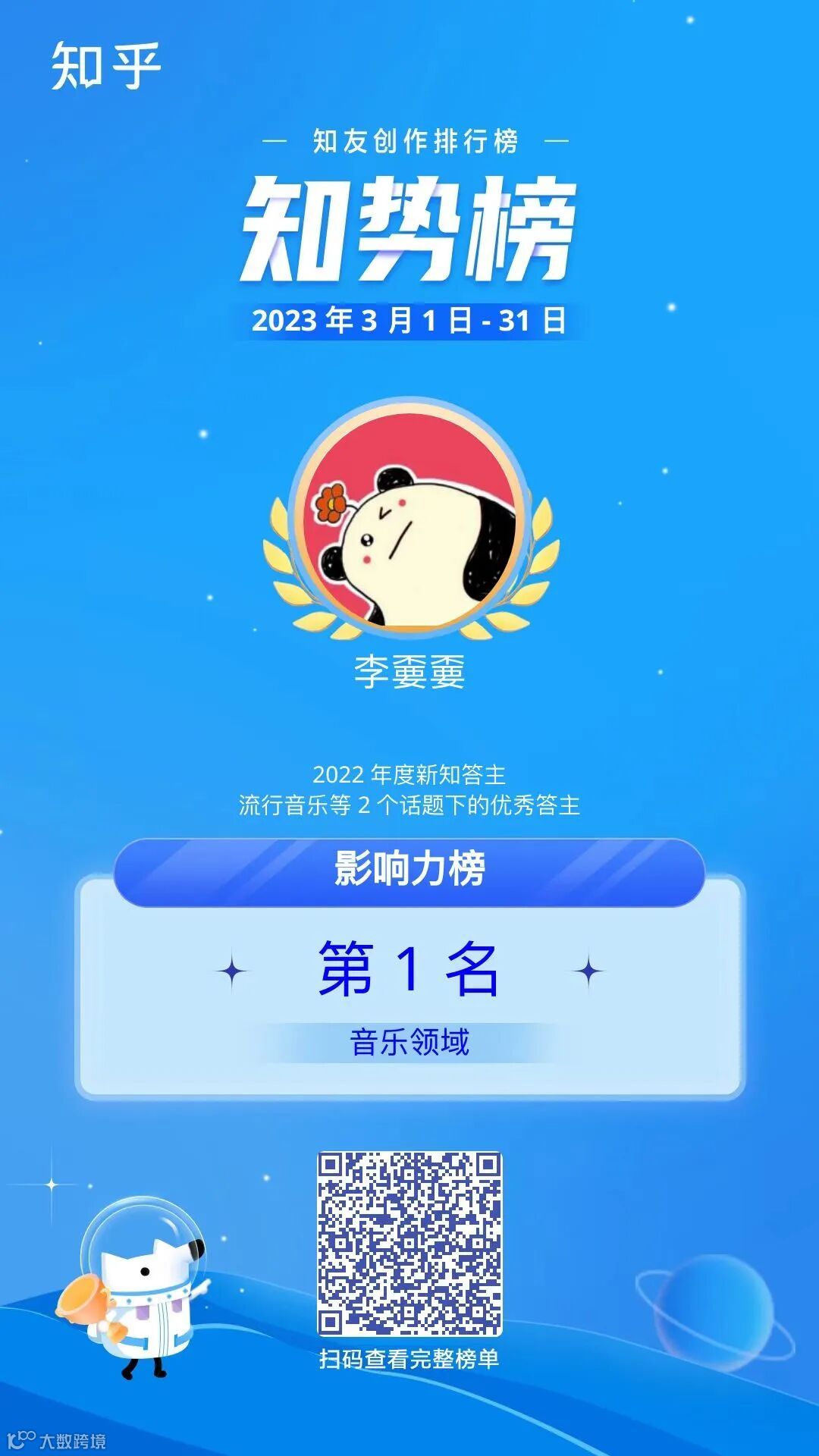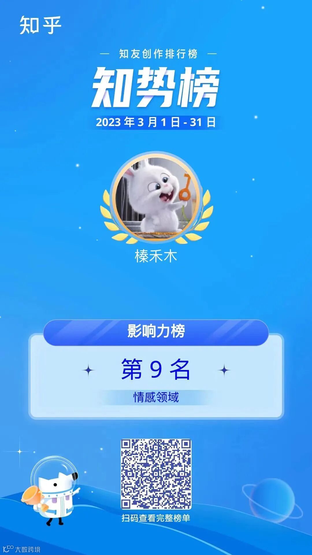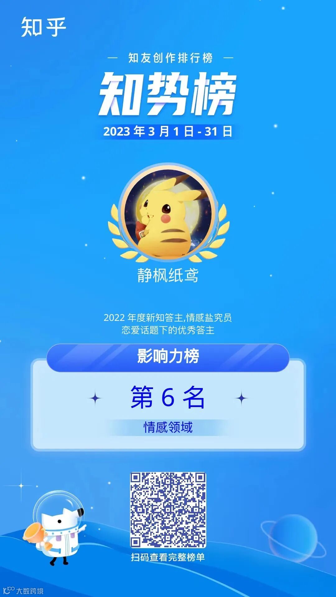 「知势榜」作为知乎平台官方发布的“知友创作影响力”榜单,是对每位真诚创作、热心分享答主的鼓励与认可。榜单从「创作力」、「互动力」、「用户喜爱度」三个维度综合评选得出,更印证出上榜作者的优秀表现。