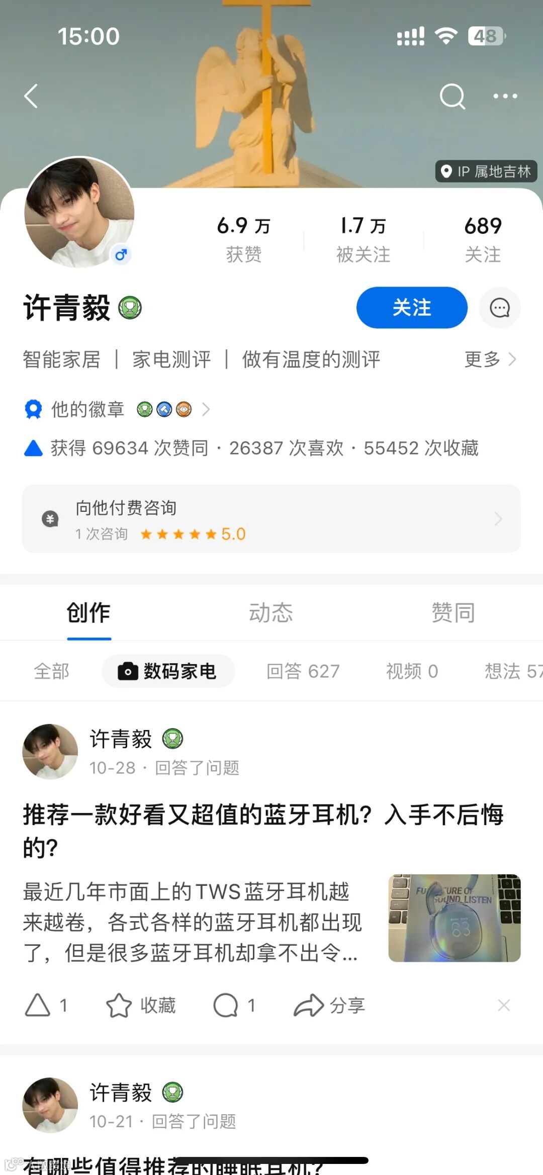 个人简介:擅长家居家电创作,已经有3年左右的家电测评经验,并测评过100款以上的产品。擅⻓智能家居、家电、数码等方向的内容创作和带货。