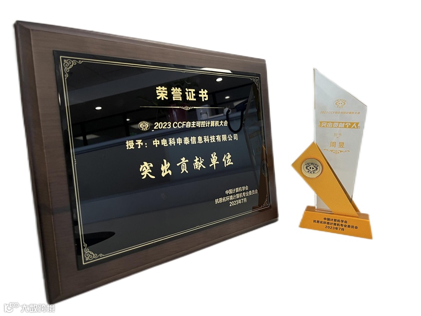 在颁奖环节,凭借核心技术自主创新优势和深厚的行业实践经验,电科申泰获评CCF计算机大会“突出贡献单位”,公司总经理周昱获评“突出贡献个人”。