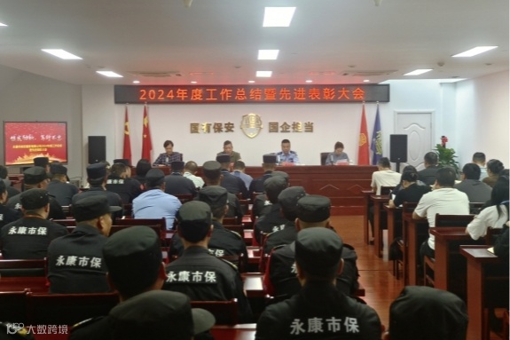为全面总结2024年度工作成果,表彰先进典型,激励全员奋进,2025年4月10日,永康市保安服务有限公司召开2024年度工作总结暨先进表彰大会。公司党支部书记、董事长、经理杜拥军,董事、副经理鲍康浩,监事会主席胡少波,公司全体后勤人员、受表彰班组班长代表及个人参加会议,市公安局基层基础管理大队副大队长夏双安应邀出席指导。会议由鲍康浩主持。