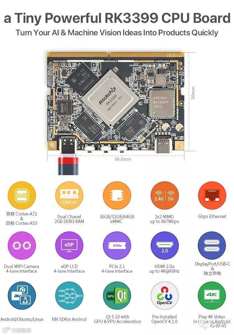 RK3399这款芯片相对于树莓派4的CPU还是很有特点的,RK3399的A72核心的主频高,GPU性能也相对更强劲;另外RK3399是大小核架构,具有比较好的功耗特性。
