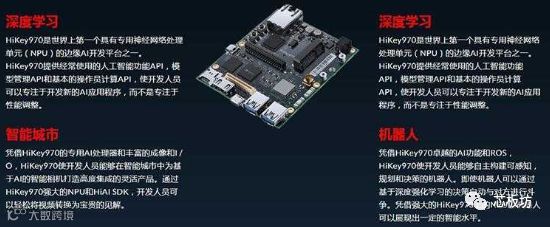 其次,它能切实帮助初创企业推进智能机器人、智慧城市项目产业的布局。HiKey970集成了华为创新设计的HiAI框架,以及其他主流的神经网络框架,不但支持CPU、GPU、AI运算,还支持基于NPU的神经网络计算硬件加速,能效和性能分别可达CPU运算的50倍、25倍。