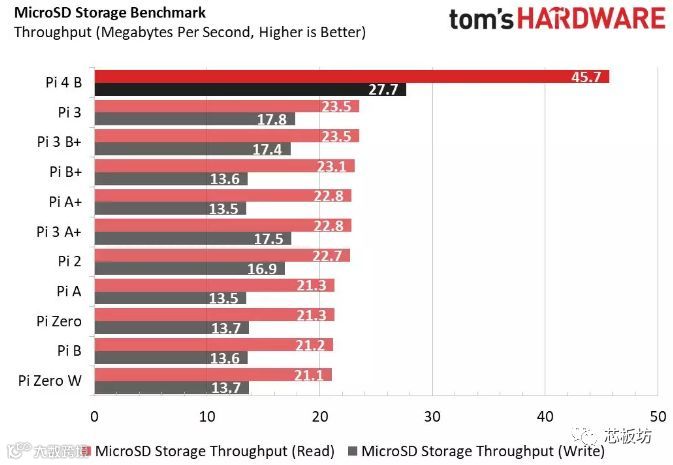 树莓派4代依然没有PCIe,不支持高速eMMC,也不支持NVME固态硬盘。只有个小打小闹的TF卡接口,读写速度就当个笑话看吧。大家没有必要花大钱给树莓派4配读100写60的三星EVO Plus内存卡,因为树莓派4的TF卡接口有瓶颈。