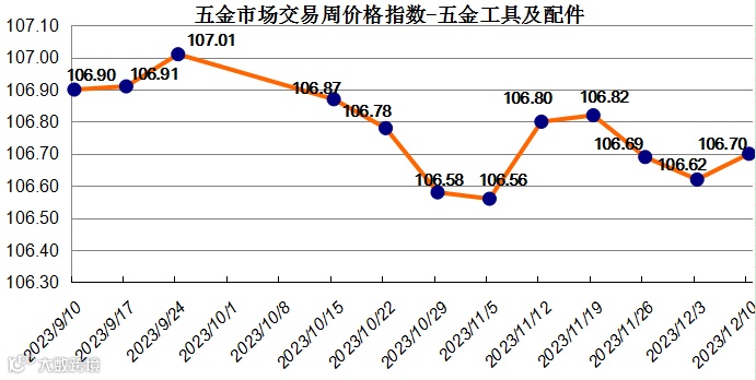 据监测,“世界·永康五金指数”五金市场交易周价格总指数上周(2023年12月4日至2023年12月10日)收于105.37点,较前一周微幅下跌0.02个百分点。