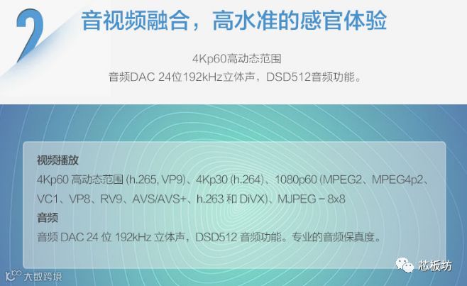 4Kp60高动态范围,音频DAC 24位192kHz立体声,DSD512音频功能