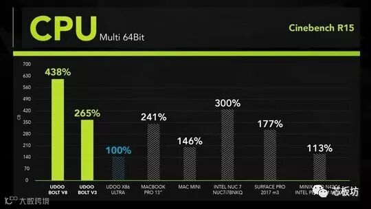 ▲ 高阶版Bolt与前代Udoo X86相比,多核心运算效能约有4.38倍成长