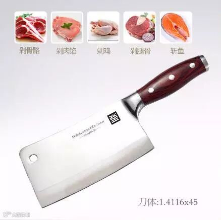 也大,为保证不崩溃,硬度不会太高,适合砍骨头和硬物,不追求锋利但求皮实。斩骨刀手感比菜刀重,重心要靠近中间,挑选的时候要选结实的刀柄类型,刀柄一旦松动就坚决不可使用。剁砍的时候保证骨头放平了、稳固了,运力的方向一定要与刀的平面重合,刀歪了或者骨头没放平,都会出现意外,如骨头砍得飞出去,刀口卷刃等情况。