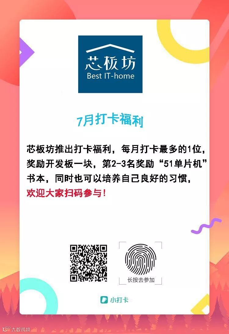 导读:芯板坊推出打卡福利!