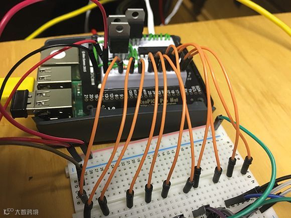 把树莓派的GPIO引出来接到分线板上。因为树莓派的GPIO不能做功率输出,为了防止损坏,这里使用了达林顿管做间接驱动。