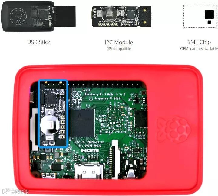 今天我们照顾一下普通的电子爱好者,所以带来了一款为树莓派设计的硬件加密模块。它同样也是基于ATECC508A密码认证芯片,由Zymbit提供解决方案。对于树莓派,有3种Zymkey产品,分别是基于USB、I2C和贴片模块。(注:USB版是老产品,已经停产)