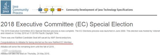 2018年5月17日,作为唯一中国代表,阿里巴巴获邀加入Java全球管理组织Java Community Process (JCP)的最高执行委员会。此次获得执行委员会席位,让中国企业首次加入到Java全球标准的制定中,更多“中国标准”有望成为全球规范。