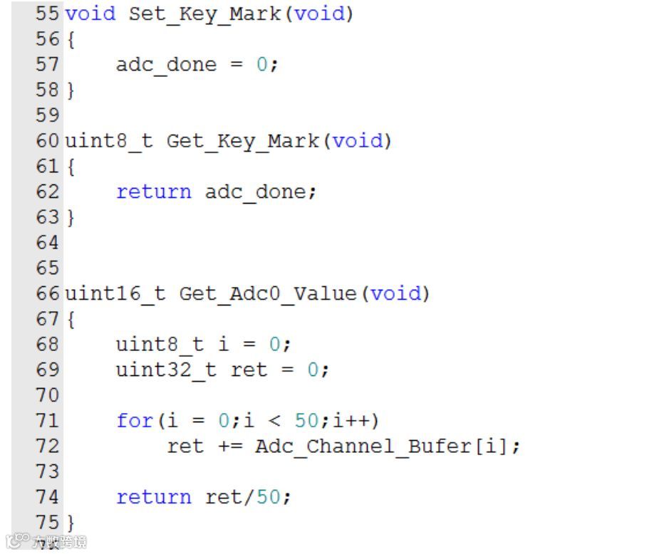 关于前两个函数,我只是对公用全局变量进行一下封装而已,以使得以后大量的工程代码使用修改的方便。最下面的函数当然是获取50次键值的平均值啦。