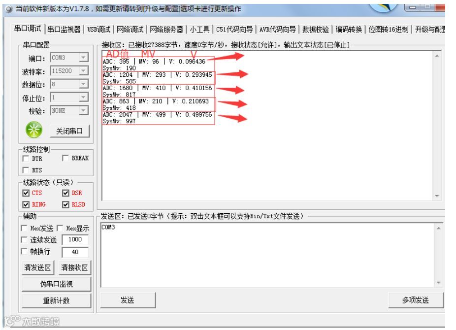不多说!就是计算一下采集电压。当然,库中也存在一个函数进行调用,单位为mV。就是它了: