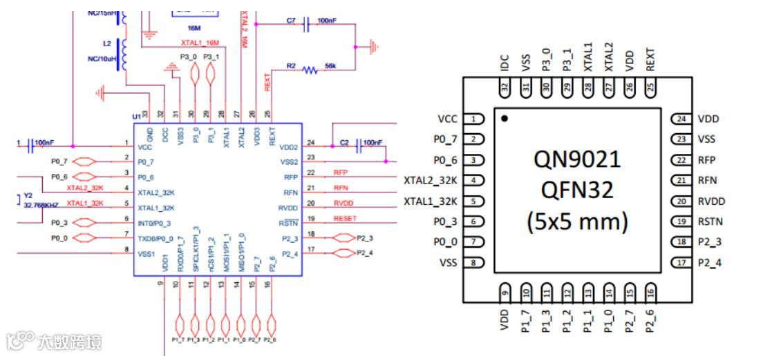 在此解释一下,QN9021这款基于Cortex-M0的MCU的外部中断可能和其他通用系列的MCU的外部中断有点不太一样,就是外部中断的入口地址只有一个,即为GPIO_IRQHandler,但是人性化的是我们可以在中断通过读取寄存器值辨别是哪一个引脚产生了中断。
