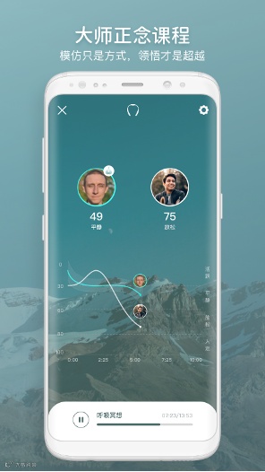 对有冥想经验的小伙伴们,可以试试“名师挑战”,跟随大师的预设曲线冥想,在模仿中与大师共振。